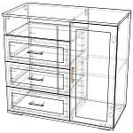 Современный комод Азарт-2 прекрасно впишется в интерьер Вашей спальни или гостиной. Наличие нескольких полок в боковой панели за распашной дверцей позволяет хранить необходимые для Вас вещи, а в выдвижные ящики поместится нижнее белье и различные аксессуары. Также в комплектации присутствует открытая полка, на которую можно положить журналы. На столешницу можно расставить семейные фото или сувениры. Купить такой комод Вы можете в нашем интернет-магазине быстро и недорого.