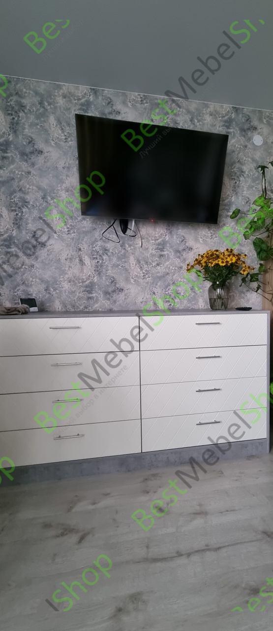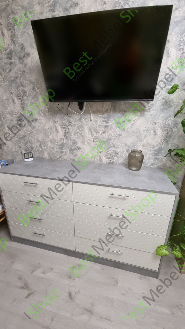 Удобный вместительный комод. Подобрали цветовую гамму идеальную для нас. Фрезеровка очень понравилась. Направляющие бы для ящиков получше, но было уже совсем дорого.