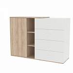 Комод Эрдо 5 BMS – комбинированная модель, объединяющая распашное отделение, открытые полки и ряд из четырех выдвижных ящиков. Продуманная конструкция позволит разместить как домашний текстиль и бытовые мелочи, так и книги или декоративные предметы. Эффектное дополнение интерьера современной гостиной, комод отличается стильной разноуровневостью и выполнен в сочетании оттенков под массив дуба и черного или белого цвета на выбор. Купить комод Эрдо 5 BMS вы сможете в нашем интернет-магазине с учетом необходимых параметров.
