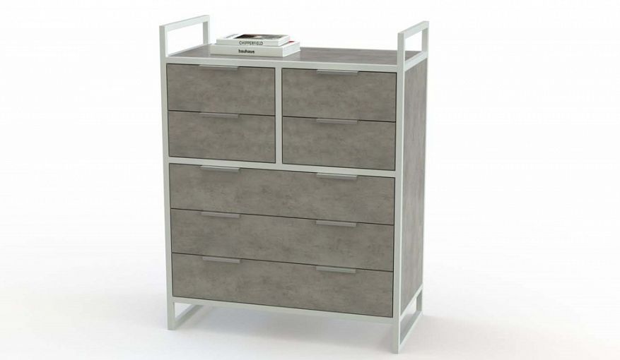 Комод Ланс 4 BMS поможет вам создать актуальный интерьер в индустриальном стиле. Лаконичный корпус из износостойкой ламинированной плиты с имитацией бетона подчеркнут металлическим каркасом с высокими опорами и бортиками. Три больших и четыре малых выдвижных ящика, оснащенных парными торцевыми ручками, обеспечат удобное хранение как мелочам, так и более габаритным вещам. Купить комод Ланс 4 BMS с выбором фурнитуры и цвета по каталогу приглашаем в наш интернет-магазин.