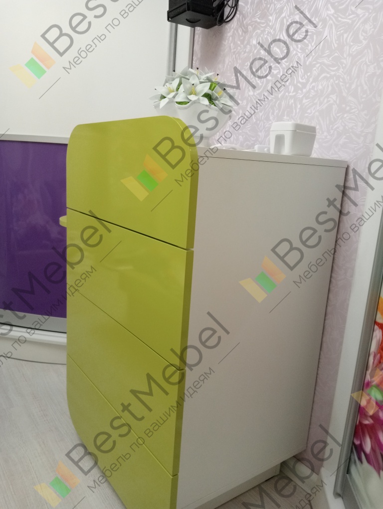 Комод заказала в салатовом цвете. Красивый. Удобный. Вместительный. Второй раз заказываю мебель в этом магазине и очень довольна.
