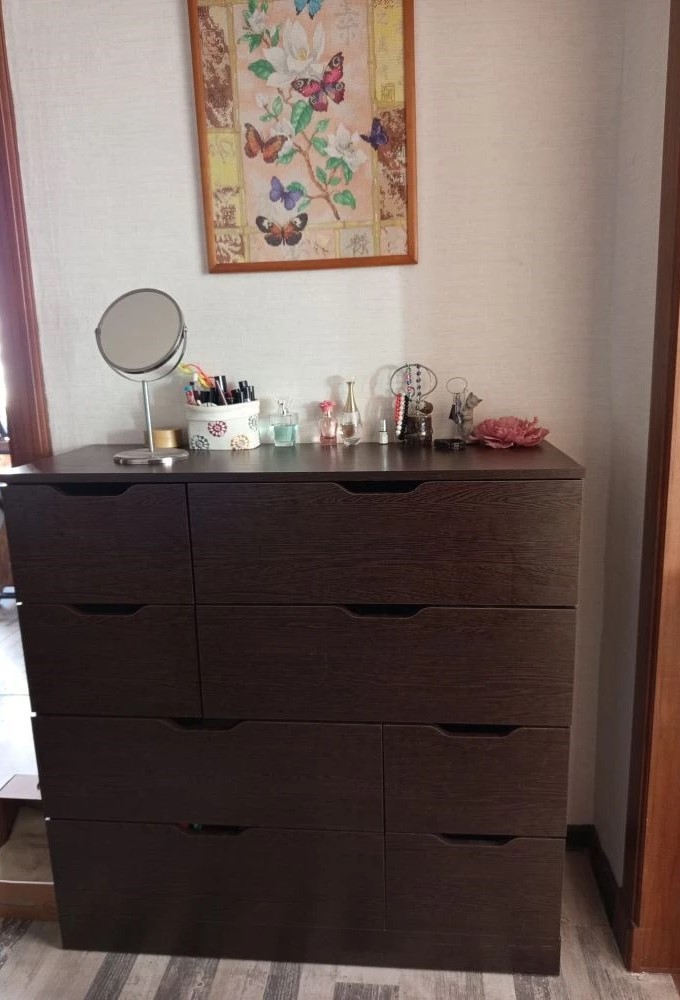 Хочу оставить отзыв о данном комоде. Заказывали через сайт с доставкой дома в феврале 2025 года. Комод искали очень долго, так как нигде именно серого цвета не было, сколько магазинов и сайтов не пересмотрела, еще что очень нравится в данном магазине, что можно подогнать мебель по своим размерам, что мы и сделали с комодом) Комод идеально подошел по цвету к гардеробной, просто один в один. Сам комод очень красивый, вместительный и функциональный. Доставка была осуществлена во время. Все комплектующие к комоду были в наличии. Очень довольна покупкой данного комода. Спасибо большое «Бестмебель»! Вернемся к вам, еще и не раз!