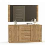 Комод Рафло BMS отличается крупными габаритами и предназначен для меблировки просторных комнат. Массивная благодаря накладкам на фасаде модель выполнена в теплых оттенках с имитацией массива дерева и, помимо трех выдвижных ящиков, оборудована двумя распашными боковыми отделениями. В комплекте с большим навесным зеркалом комод составляет стильную композицию и может использоваться в качестве туалетного столика. Купить комод Рафло BMS для спальни гостиной или прихожей вы сможете в нашем интернет-магазине.