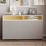 Комод Цитрус BMS – это комбинированная модель для современной гостиной, спальни или молодежной комнаты. Комод оборудован широкой столешницей, на которой смогут разместиться интерьерные украшения, двумя нишами и шестью выдвижными ящиками для домашнего текстиля и разнообразных бытовых вещей. Лаконичный дизайн модели подчеркнет нейтральное цветовое решение. Купить комод Цитрус BMS и легко поддерживать в доме порядок вам всегда поможет наш интернет-магазин.