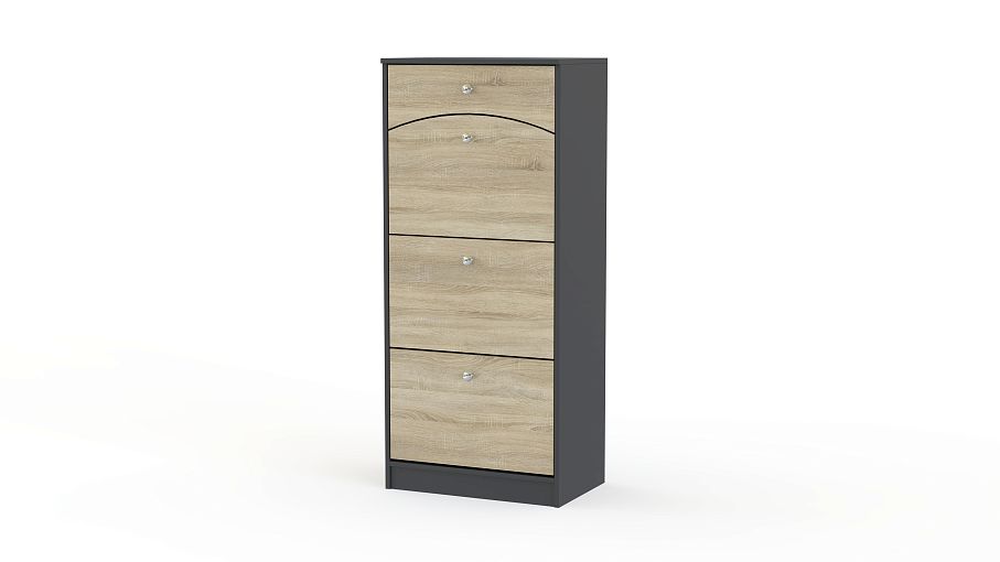 Обувница Фая 6 BMS поможет организовать удобное хранение обуви и уходовых средств в интерьере современной прихожей. Высокая и небольшая по ширине тумба оборудована тремя откидными обувными секциями и выдвижным ящиком для мелочей в верхней части. Фасады, выполненные в натуральных оттенках под массив дерева, оснащены ручками-кнопками, дверца одного из отделений и ящик фигурно вырезаны. Купить обувницу Фая 6 BMS по выгодной цене приглашаем в наш интернет-магазин.