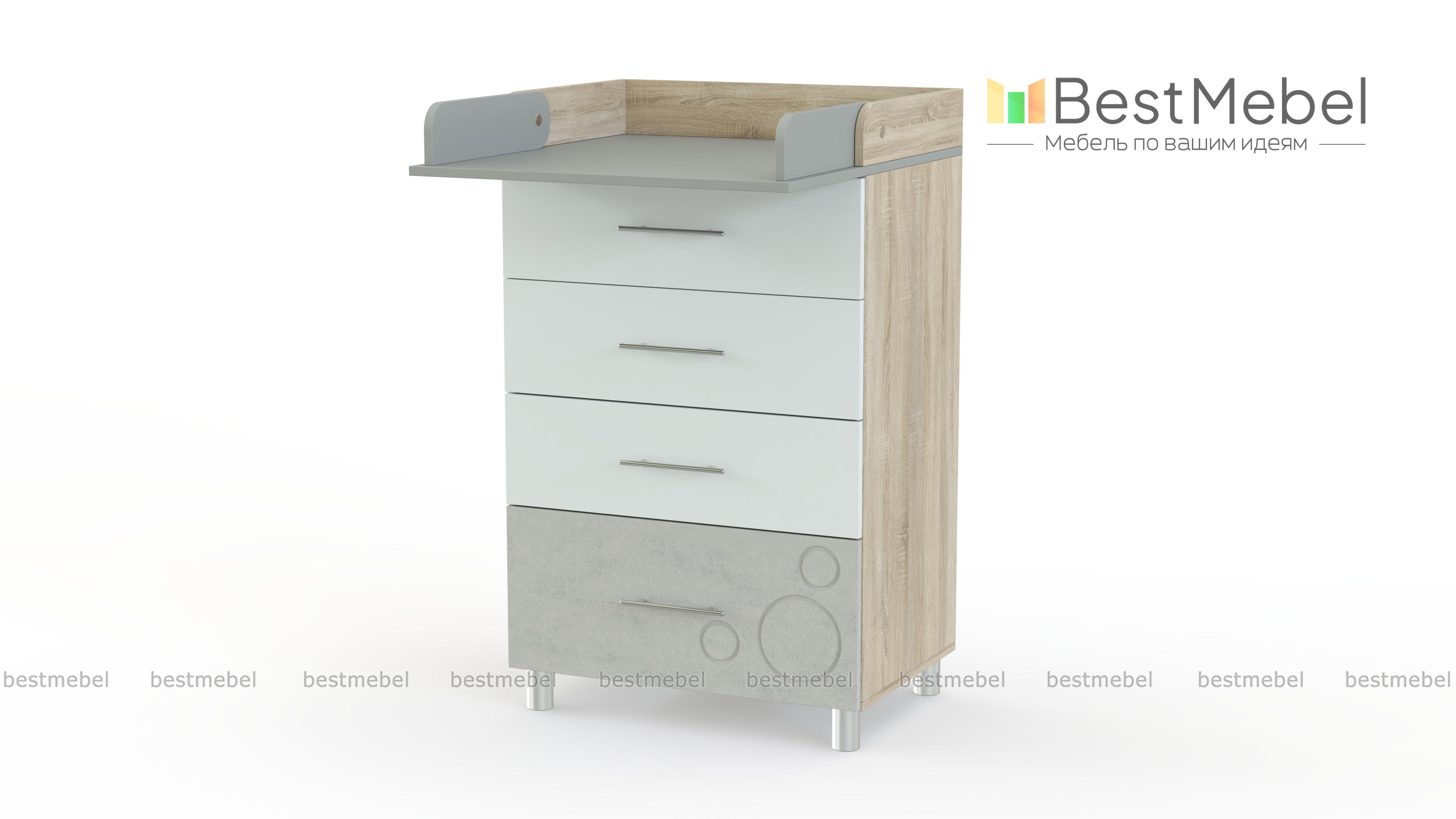 Пеленальный комод Флай 1 BMS с цветным фрезерованным фасадом по достоинству оценят владельцы небольших помещений. Компактная модель оборудована откидным пеленальным столиком, который в сложенном виде может использоваться как полка. Устойчивость и легкость конструкции обеспечивают высокие металлические ножки, а для хранения вещей малыша предусмотрены один большой и три малых выдвижных ящика. Купить пеленальный комод Флай 1 BMS вы сможете в нашем интернет-магазине, подобрав цветовое решение.