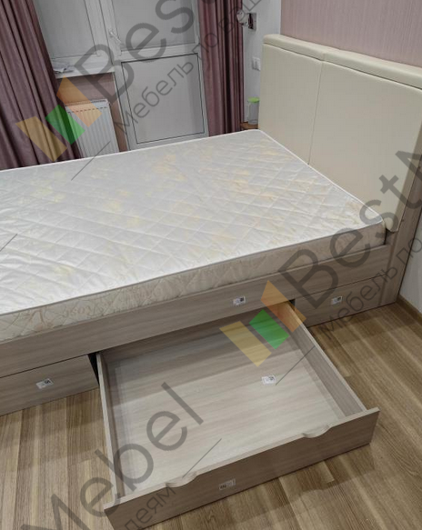 Очень удобная кровать то,что искала,мягкий подлокотник ,можно протирать тряпочкой от пыли,удобные бельевые ящики с двух сторон ,сама кровать высокая ,для меня лично это очень удобно,тем более за такие деньги доступная кровать!рекомендую!