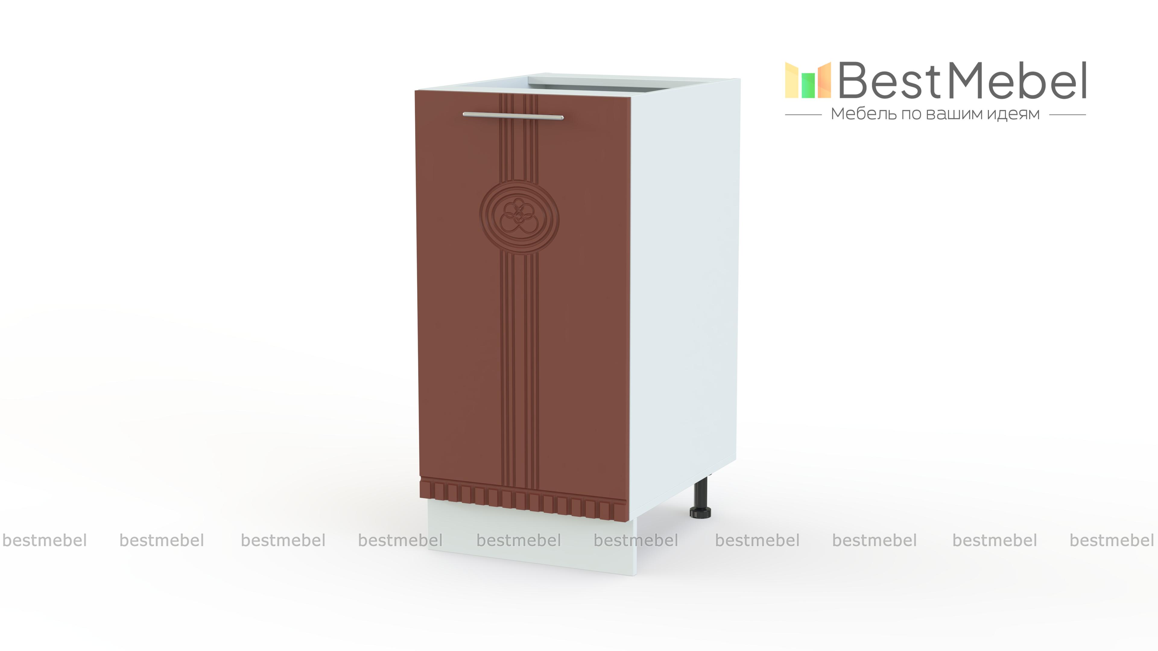 Кухонная тумба 1 дверь Паллада BMS предназначена для нижнего ряда модульного комплекта в стиле модерн. Компактные размеры позволят легко вписать модель в помещения любой планировки, а стильным акцентом в домашнем интерьере станут фасады с оригинальным фрезерованным рисунком. Распашное отделение с полкой отличается универсальностью и подходит для хранения продуктов, посуды и разнообразных кухонных принадлежностей. Регулируемые опоры обеспечат конструкции устойчивость. Купить кухонную тумбу 1 дверь Паллада BMS приглашаем в наш интернет-магазин.