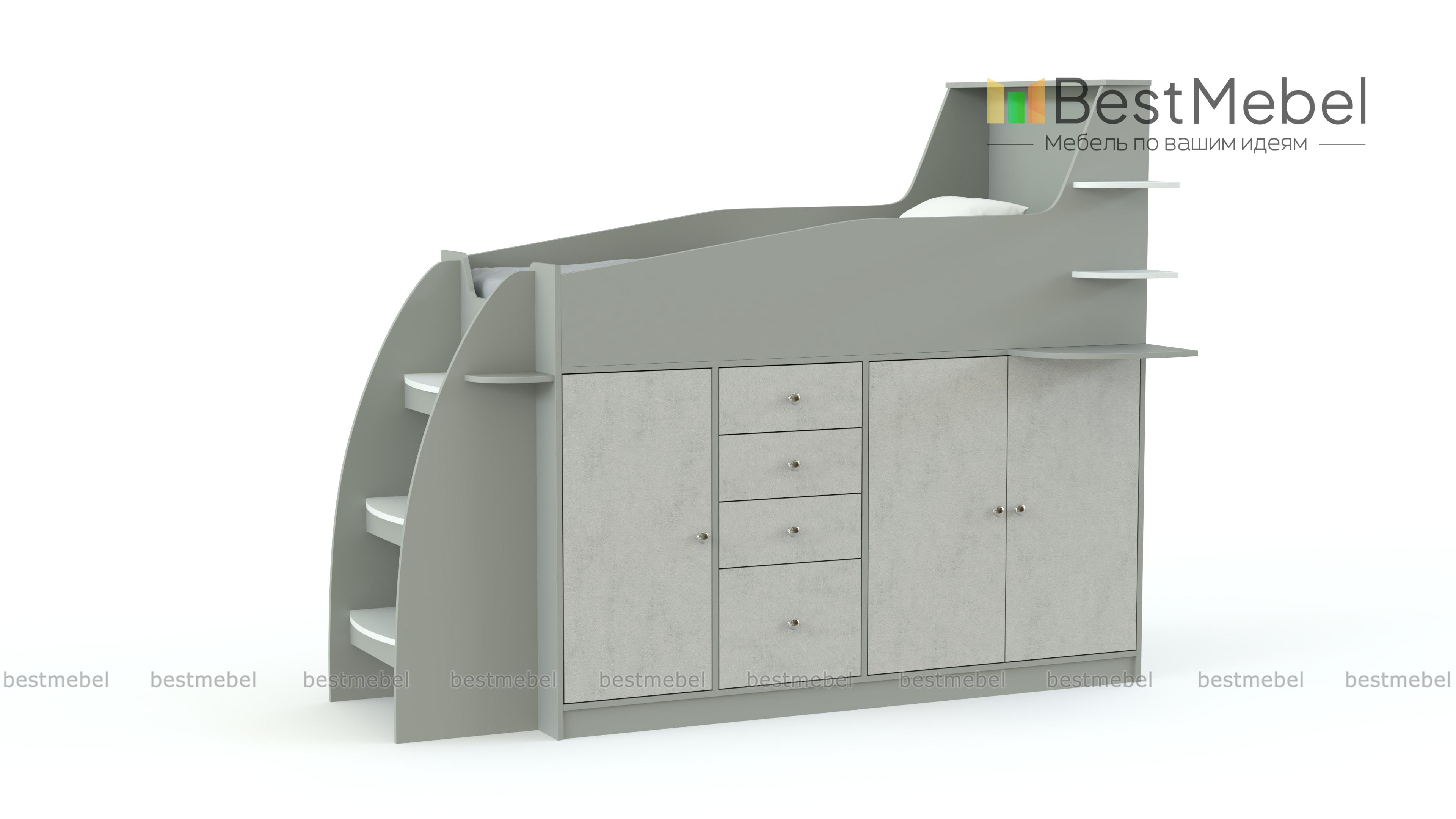 Кровать-чердак Коста 3 BMS отличается оригинальным дизайном и станет частью игровой зоны в современной детской. Модель оборудована уютным спальным местом с защитными бортиками и полочками для мелочей, устойчивой лестницей с широкими ступеньками, распашными шкафчиками для белья и одежды и выдвижными ящиками. Яркое цветовое решение непременно понравится детям, а безопасность обеспечат скругленные углы. Купить кровать-чердак Коста 3 BMS приглашаем в наш интернет-магазин по лучшей цене.