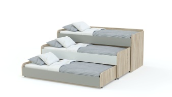 Кровать детская трехъярусная Львенок BMS – практичное и недорогое решение для малогабаритной комнаты. Помимо расположенного на высоком основании стационарного спального места, модель оборудована двумя выкатными и подходит для сна троих детей. Кровать отличается надежностью, современным дизайном и выполнена в сочетании древесных тонов корпуса и нейтральных цветных фасадов. Углы безопасно скруглены, торцы обработаны защитной кромкой. Купить кровать детскую трехъярусную Львенок BMS для дома или спальни детского сада приглашаем в наш интернет-магазин.