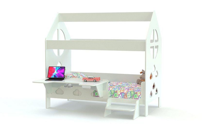 Кровать-домик Лимпо 10.4 BMS – это яркий дизайн, который обязательно понравится детям, и практичная конструкция. Необычная модель в форме домика оборудована комфортным спальным местом с удобной для ребенка ступенькой и столиком с эргономичной столешницей для учебы, игр и творческих занятий. Выполненный в белом оттенке, «домик» дополнен круглыми окошками на боковинах и декорирован вырезами. Купить кровать-домик Лимпо 10.4 BMS по отличной цене вы сможете в нашем интернет-магазине.
