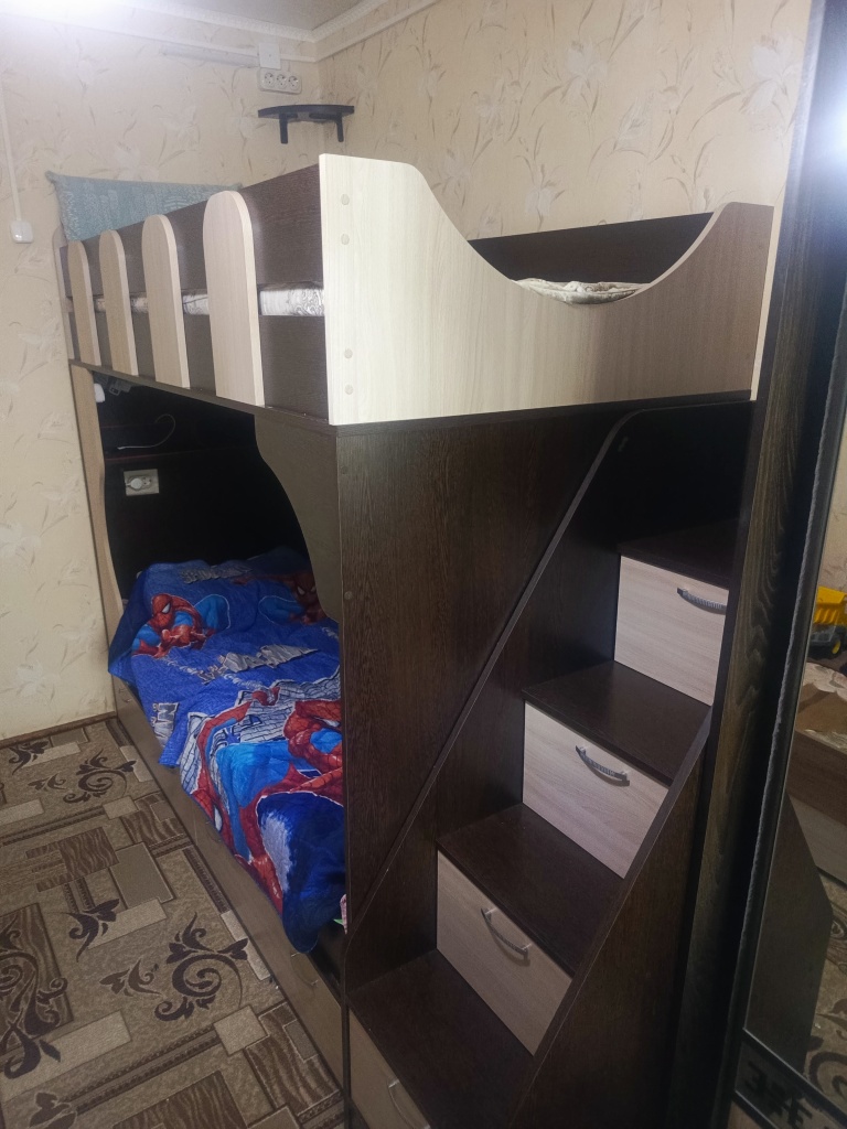 Заказ: № 1204171 от 24.08.2025 Кровать Фанки Кидз - 5 BMS (2382х1800х1000)Заказывал под мои размеры, всё сделали как мне надо и быстро. Материалы качественные, запаха почти нет, а тот что был выветрился быстро.Качество сборки тоже на высоте. Сама кровать очень удобная, лестница безопасная забиратся легко. Дети в восторге!!!