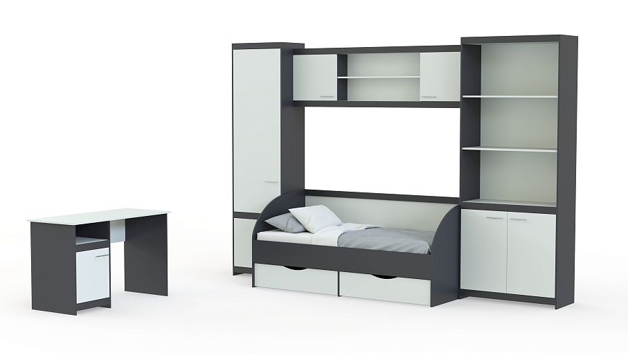 Мебель детская Спайдер BMS отличается лаконичным современным дизайном, который подчеркивает строгая контрастная расцветка, и станет отличным решением для комнаты подростка. Отдельные модули вы сможете разместить максимально удобно, оборудовав и просторное, и небольшое помещение. В комплекте письменный стол с тумбой, пенал, комбинированный книжный шкаф, навесная секция и кровать-софа с выдвижными ящиками для белья. Фасады декорированы элегантными накладками в тон корпусу. Купить мебель детскую Спайдер BMS по лучшей цене приглашаем в наш интернет-магазин.