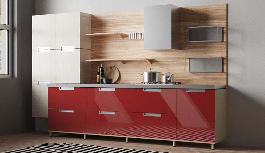 Кухня Джина BMS – оригинальная композиция для тех, кто ценит креативный дизайн и функциональность. Современная модель с глянцевыми фасадами насыщенных оттенков и крупными врезными ручками располагается на высоких устойчивых опорах, которые не только визуально облегчают конструкцию, но и делают проще уборку. Вместительные модули нижнего ряда удобны для хранения посуды, продуктов, бытовой техники, а в качестве навесных элементов использованы открытые полки для специй и декоративных мелочей. Купить кухню Джина BMS приглашаем в наш интернет-магазин по доступной цене.