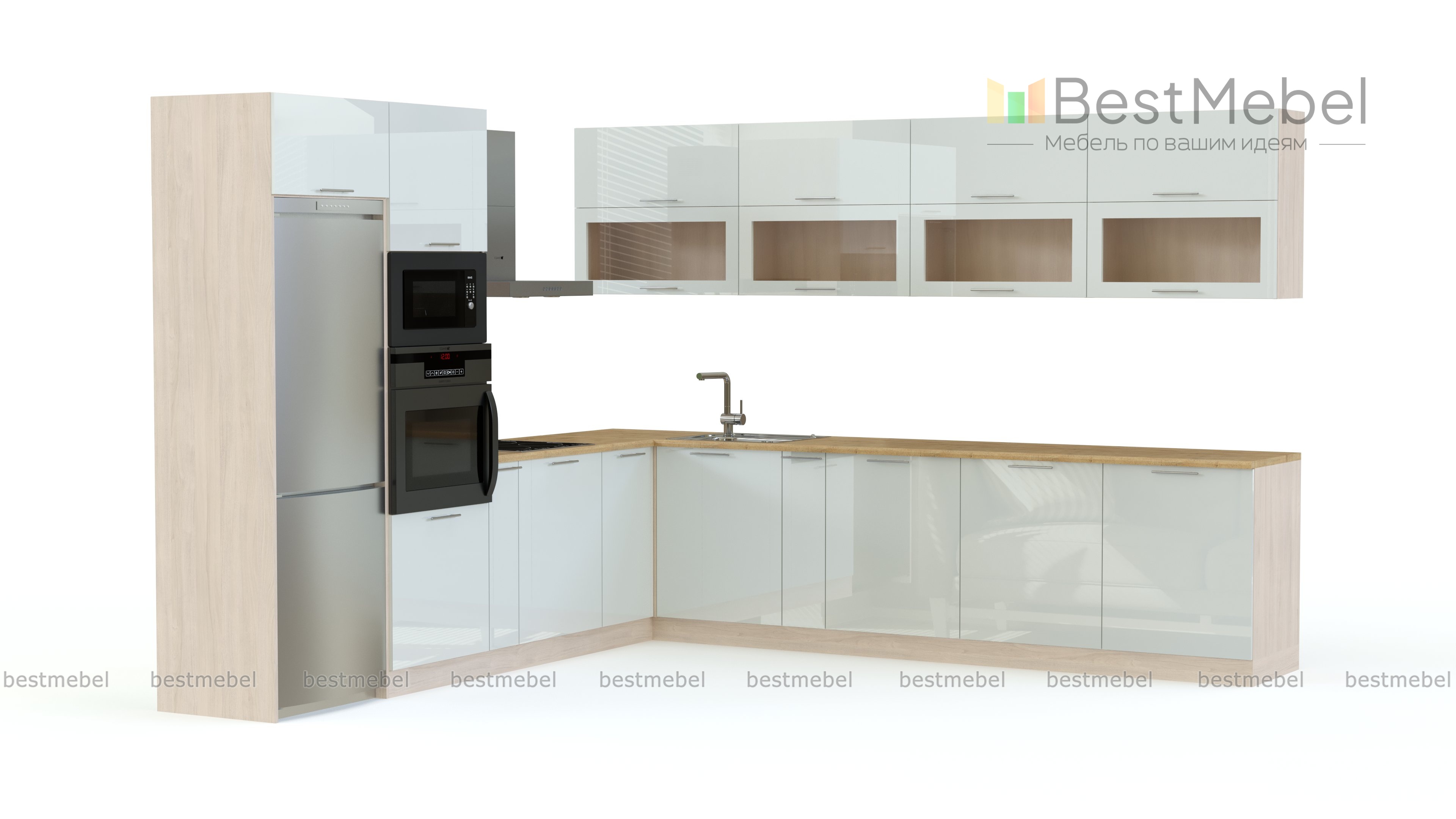 Очень красивая и стильная модель придется по вкусу любителям современных дизайнов. Кухня КХ-170 серия Хай-тек BMS с глянцевой поверхностью выглядит просто потрясающе и при этом очень функциональна. Модель углового расположения, большая и вместительная. Особое внимание привлекают большие шкафы под холодильник и бытовую технику, а также навесные шкафчики со стеклянными вставками. В гарнитур входят отдельные модули самых разных форм и назначений. В нашем интернет-магазине Вы можете купить кухню КХ-170 серия Хай-тек BMS подобрав нужные Вам цвета и скорректировав размеры.