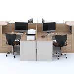 Бенч-система Лора 34 BMS предназначена для офисов открытого типа и оборудована всем необходимым для комфортной работы персонала. Модель объединила в стильной композиции четыре угловых компьютерных стола с тумбами, оснащенными замками, секциями под системный блок и нишами. Между собой рабочие зоны разделены настольными глухими перегородками. Предметы системы выполнены в нейтральной бежевой гамме и надолго сохранят эстетичный вид благодаря износостойким материалам. Купить бенч-систему Лора 34 BMS приглашаем в наш интернет-магазин.