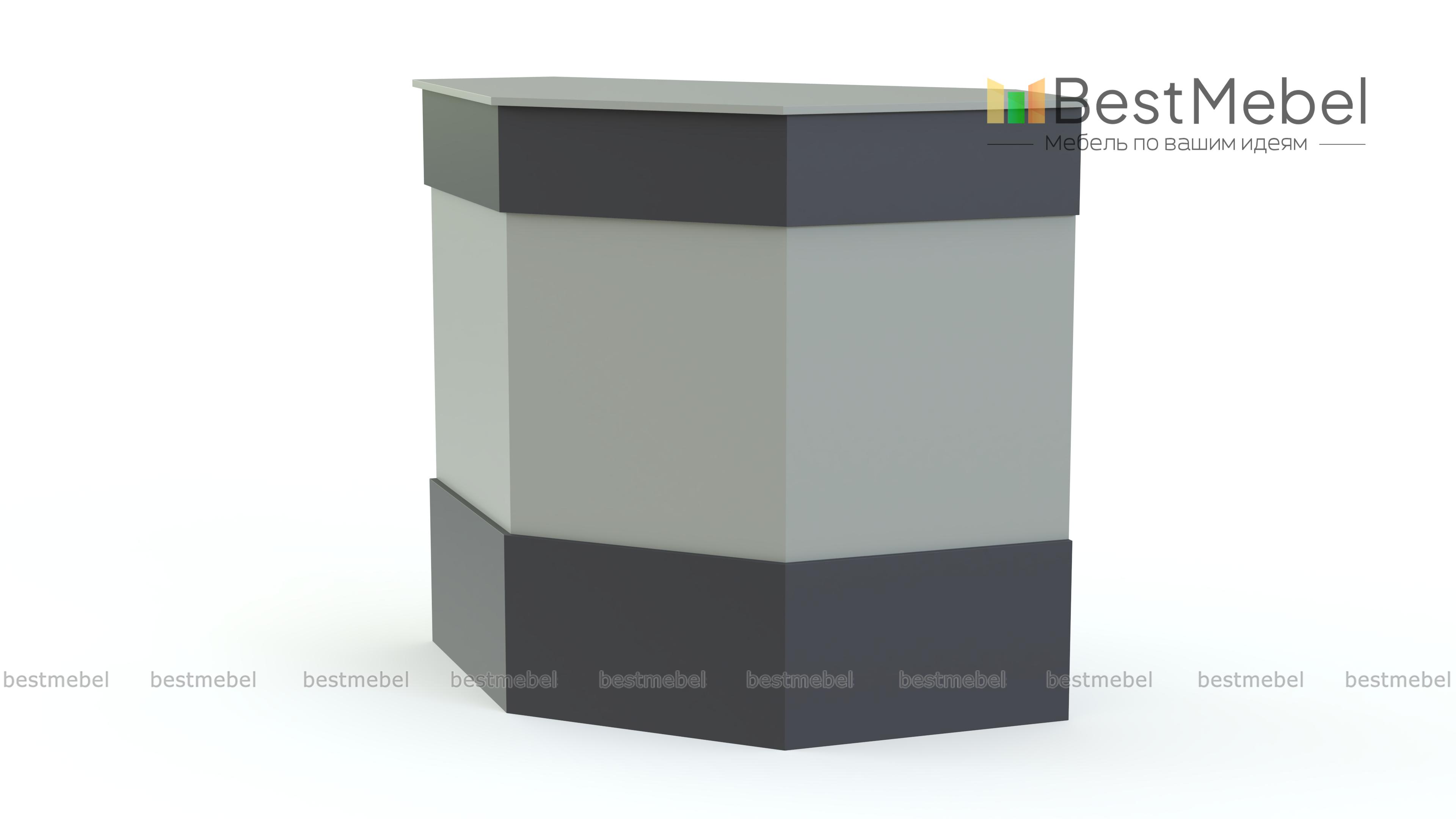 Ресепшен Рейна № 3 BMS – это угловой модуль в форме трапеции, который легко комбинируется с прямыми секциями серии для создания комфортного рабочего места. Стойка оборудована двумя просторными столешницами – внешней, для посетителей, и внутренней, для администратора. Выполненная в универсальном белом цвете, модель декорирована по фасаду горизонтальными планками контрастного серого цвета. Купить ресепшен Рейна № 3 BMS вы сможете в нашем интернет-магазине по доступной цене.