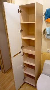 Нужен был пенал в ванную не маленький, как в обычных магазинах, а высокий и глубокий. В итоге шкаф вышел высотой 2,4 м (даже фото в "полный рост" не получилось сделать, глубина 45см и шириной 37 см. Шкаф шикарный, отлично вписался в ванную, вместительный. На дверцах еще пленка :) Качество отличное, изготовили в срок, доставка в срок. Все детали на месте, собирается легко и понятно. Спасибо за прекрасный пенал.