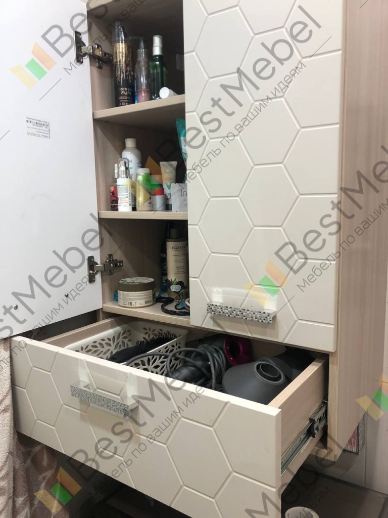 Шкаф подвесной в ванную Флора 2 BMS отличается компактными размерами, а залогом вместительности станут двухдверное распашное отделение и выдвижной ящик. Современная модель с фрезерованным фасадом гармонично впишется в интерьер небольшой ванной комнаты и разместит в зоне быстрого доступа гигиенические принадлежности и прочие нужные мелочи. Практичная подвесная конструкция экономит полезную площадь. Купить шкаф подвесной в ванную Флора 2 BMS вы сможете в нашем интернет-магазине.