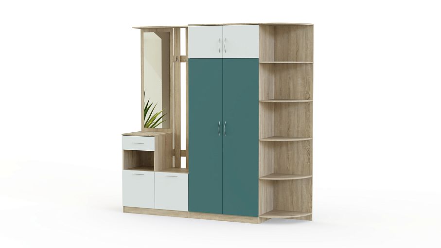Стенка-прихожая «Идеал 18» BMS – вместительная стенка, которая смотрится легкой за счет гармоничных пропорций и светлых тонов фасадов и корпуса. Для наиболее удобного размещения предметов гардероба, аксессуаров и мелочей стенка оборудована платяным шкафом с антресолями, двумя тумбами, панелью с крючками и зеркалом и угловым элементом. Особенно изящный вид придают комплекту матовые фасады тумб и цветные дверцы шкафа. Купить стенку-прихожую «Идеал 18» BMS по лучшей цене вы сможете в нашем интернет-магазине.