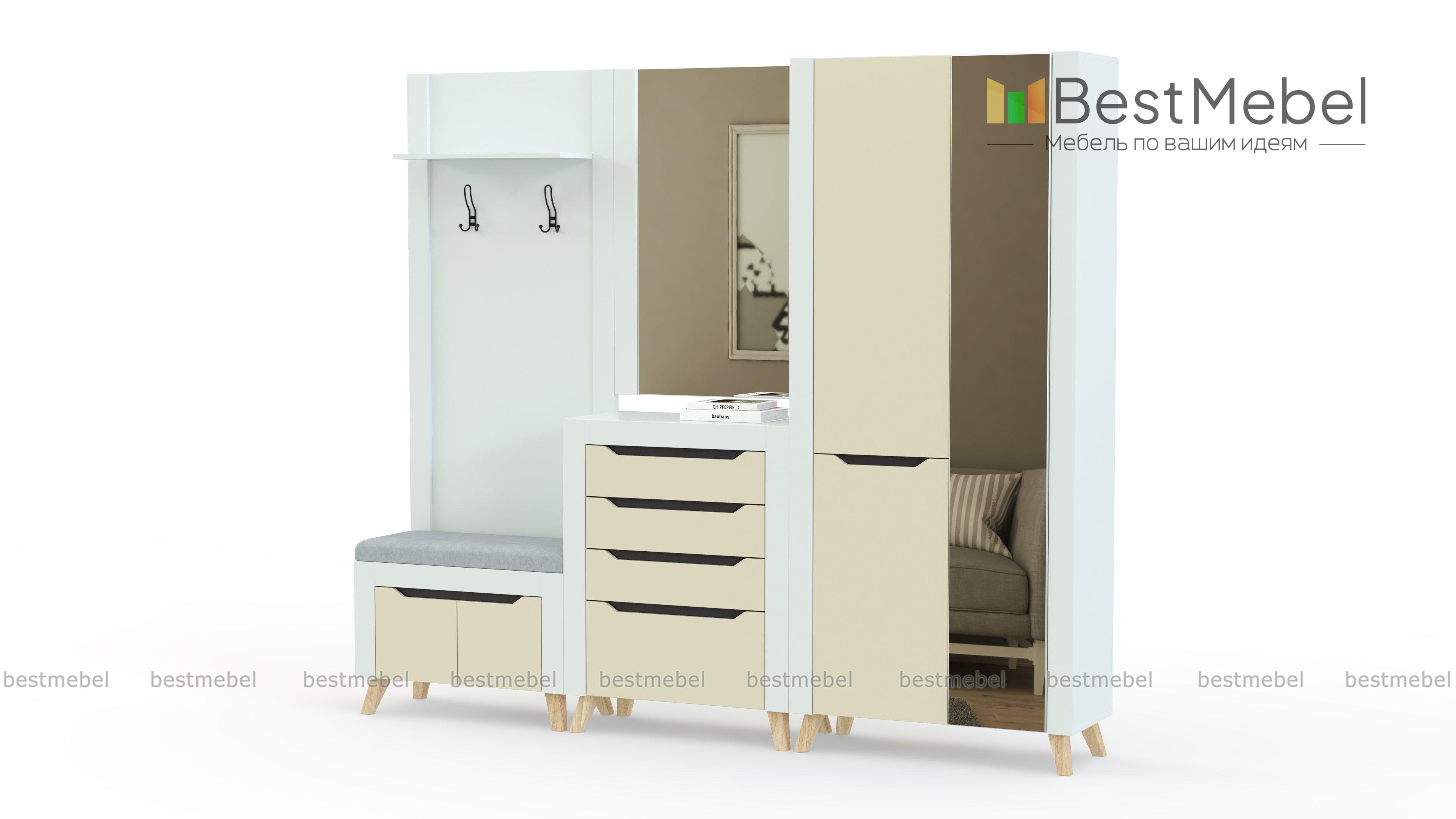 Прихожая Династия 20.2 BMS отличается стильным минимализмом и функциональностью. Нарочитую простоту модулей, выполненных в нейтральном цвете, подчеркивают широкие накладки, а модную геометричность дизайну придают трапециевидные ручки-вырезы. В комплект входят открытая вешалка, совмещенная с обувницей, распашной шкаф с зеркалом, комод и большое навесное зеркало. Купить прихожую Династия 20.2 BMS приглашаем в наш интернет-магазин с возможностью изготовления по индивидуальным размерам.