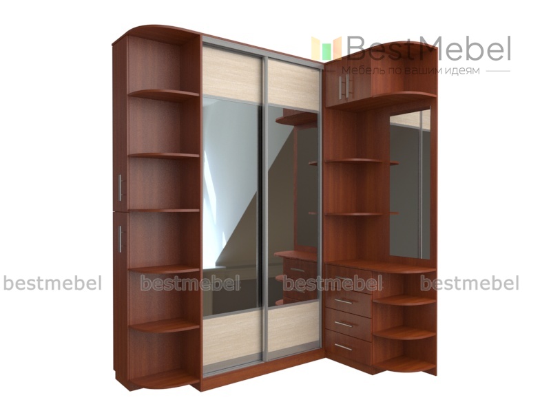 Прихожая Дали-3 BMS позволит максимально выгодно использовать свободное пространство, компактно разместив предметы гардероба, аксессуары и разнообразные мелочи. Угловая конструкция представляет собой сочетание двухдверного шкафа-купе, углового элемента с открытыми полками и торцевым шкафчиком и секции с зеркалом, тумбой, полками и антресолью. Благородные древесные оттенки дополняет фурнитура под бронзу, дверцы шкафа с контрастными фактурными фасадами украшены зеркалами. Купить прихожую Дали-3 BMS по лучшей цене вы сможете в нашем интернет-магазине.