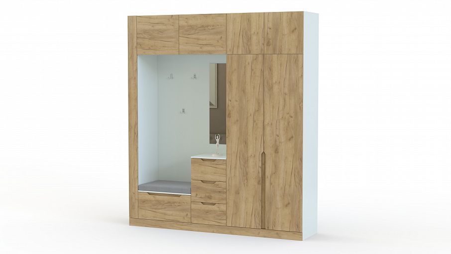 Прихожая Даниель 11 BMS компактно объединила все необходимое входной зоне. Распашной шкаф, обувница с мягким сиденьем, дополненная навесным зеркалом тумба для мелочей, открытая вешалка и антресольные секции составляют геометричную композицию. Выполненная в комбинации однотонного корпуса и крафтового древесного фасада, прихожая воплощает современные тренды в дизайне. Купить прихожую Даниель 11 BMS приглашаем в наш интернет-магазин с возможностью выбора цвета и размеров.