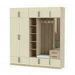 Прихожая Дуо 10 BMS - это многофункциональная стенка современного дизайна. В отделке гармонично сочетаются нейтральный цвет фасадов с удлиненными стильными ручками и древесный рисунок корпуса. Платяной шкаф, стеллаж для мелочей, открытая вешалка и зеркало с двумя выдвижными ящиками дополнены сверху и снизу закрытыми распашными секциями. Купить прихожую Дуо 10 BMS приглашаем в наш интернет-магазин, подобрав размеры и подходящую именно вам цветовую гамму