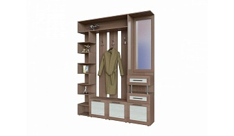 Современная прихожая Стефани 03 BMS симпатичная, стильная и удобная. Благодаря сочетанию цветов под массив, большому зеркалу, стильной фурнитуре и расположению оригинальной стойки с полками мебель не выглядит громоздкой. Модель состоит из большой открытой вешалки с отделением для головных уборов, зеркала, внизу расположен комод и двойная тумба для обуви, большая поверхность которой служит подставкой для сумок, зонтов и т.д. У нас Вы можете купить недорого прихожую Стефани 03 BMS в превосходном качестве.