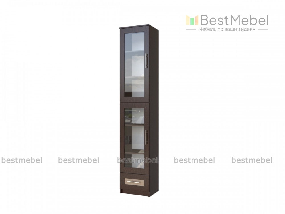Библиотека Эгисф 25 BMS дополнит шкафную группу или может использоваться в малогабаритных помещениях самостоятельно. Вместительная за счет высоты, модель оборудована двумя распашными отделениями с застекленными дверцами и выдвижным ящиком для мелочей в основании. Просторные полки оптимально подходят для хранения книг разного формата и документов. У шкафа петли справа, ручки слева.