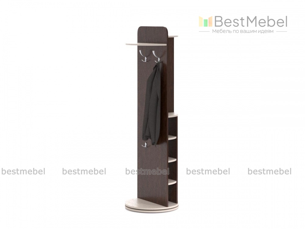 Поворотная прихожая Новинка 7 BMS актуальна в небольших помещениях, где поможет сэкономить полезную площадь, не экономя на функциональности. Современная модель в контрастных древесных тонах расположена на круглом основании и оборудована зеркалом, открытыми полками, крючками для аксессуаров, секцией для головных уборов и мини-штангой на хромированной опоре. Наличие поворотного механизма делает пользование удобным, позволяя легко найти нужную вещь. Купить поворотную прихожую Новинка 7 BMS по демократичной цене приглашаем в наш интернет-магазин.