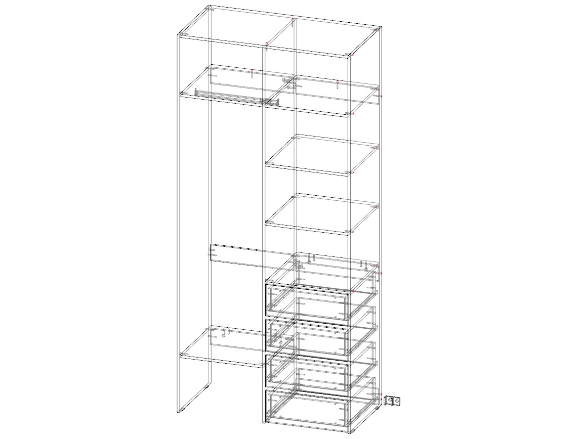 Стеллаж для одежды Мирта 2 BMS поможет вам организовать хранение дома или в торговом зале. Открытая конструкция со штангой, полками и рядом из четырех выдвижных ящиков подходит для размещения одежды на вешалках, коробок с обувью и мелкого трикотажа. Материал изготовления – устойчивая к износу и долговечная ламинированная плита в базовом оттенке.