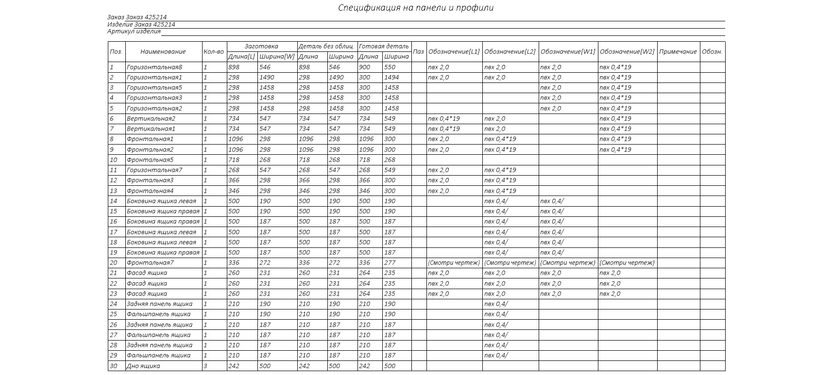 Параметры изделия: