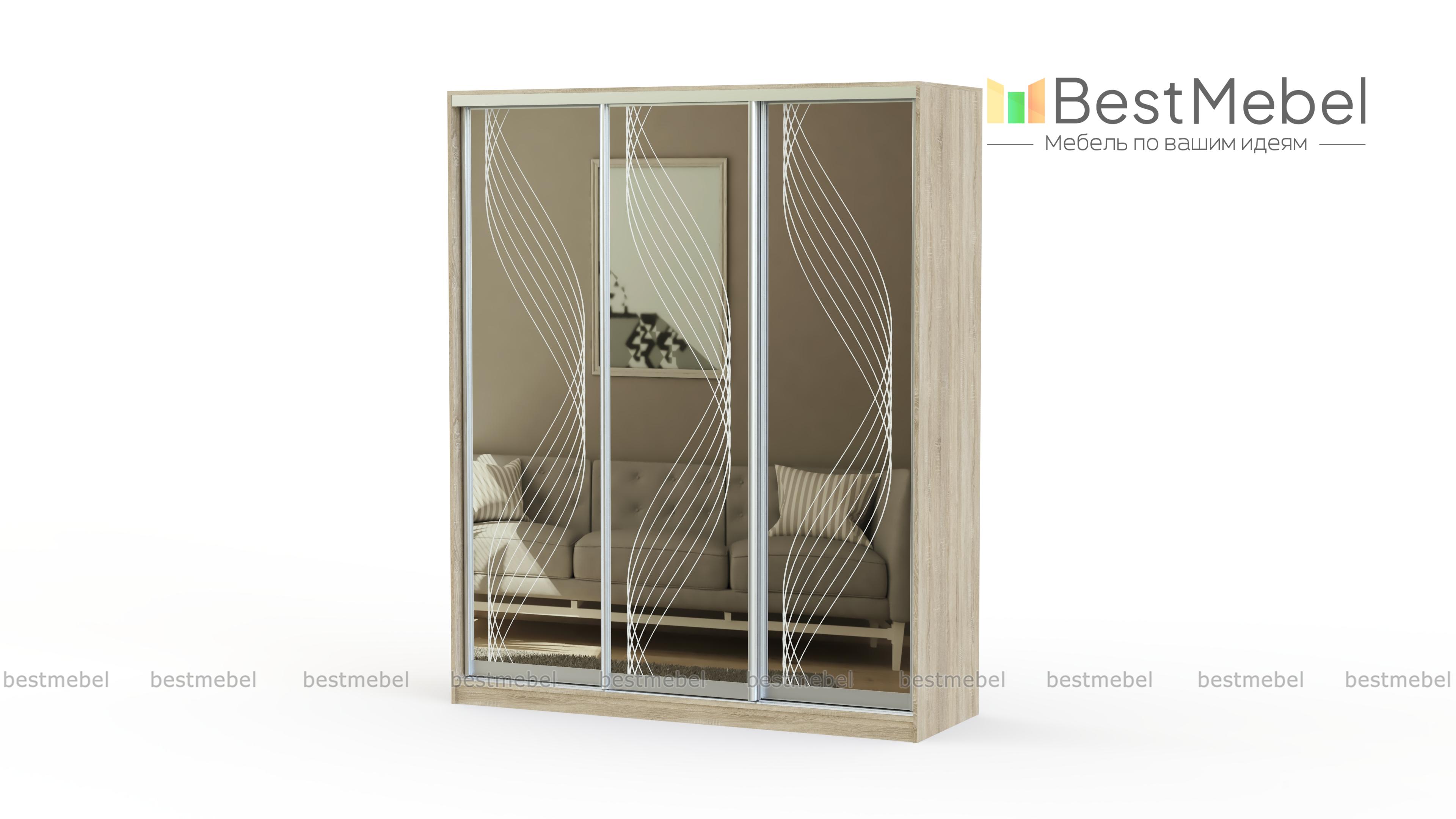 Шкаф-купе ФЛЕР 7 BMS – это вместительность, визуальная легкость и практичная конструкция, которая позволит сэкономить пространство. Трехдверная модель проста и надежна в эксплуатации благодаря качественной системе направляющих, а украшением комнаты станут зеркальные фасады с пескоструйным графичным рисунком. Аккуратное размещение предметам гардероба и домашнему текстилю обеспечат платяное отделение и бельевые полки. Купить шкаф-купе ФЛЕР 7 BMS приглашаем по привлекательной цене в наш интернет-магазин.