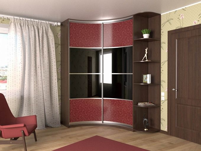 Шкаф радиусный Маджонг BMS станет частью системы хранения и украшением интерьера современной спальни или гостиной. В эффектной модели сочетаются разные цвета, фактуры и необычная форма фасада. Угловой шкаф комбинированной конструкции объединил двухдверное отделение-купе и торцевой элемент с открытыми скругленными полками, что позволит разместить одежду, предметы декора, уходовые средства и множество мелочей. Корпус темного древесного оттенка дополняет фасад с яркими глянцевыми вставками. Купить шкаф радиусный Маджонг BMS приглашаем в наш интернет-магазин по лучшей цене.