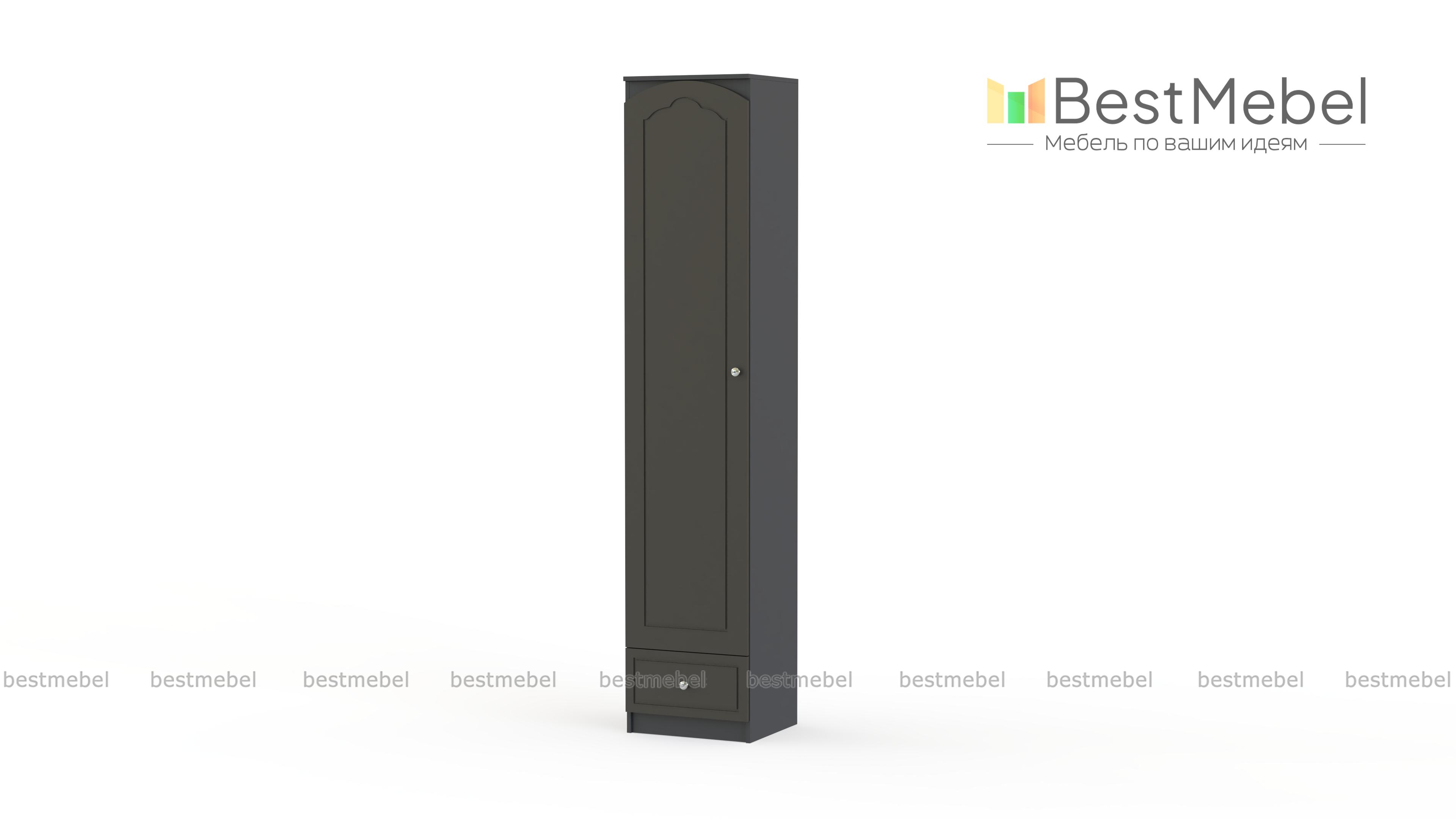 Шкаф Амалия СБ-986 левый BMS, выполненный в классическом стиле с характерным декором, станет практичным и изящным дополнением традиционного интерьера спальни или гостиной. Высокая узкая модель со светлыми фасадами, украшена фрезеровкой и миниатюрными ручками в тон. За распашной дверцей располагаются полка и штанга, в основании – выдвижной ящик для мелочей. Купить шкаф Амалия СБ-986 левый BMS по лучшей цене приглашаем в наш интернет-магазин.