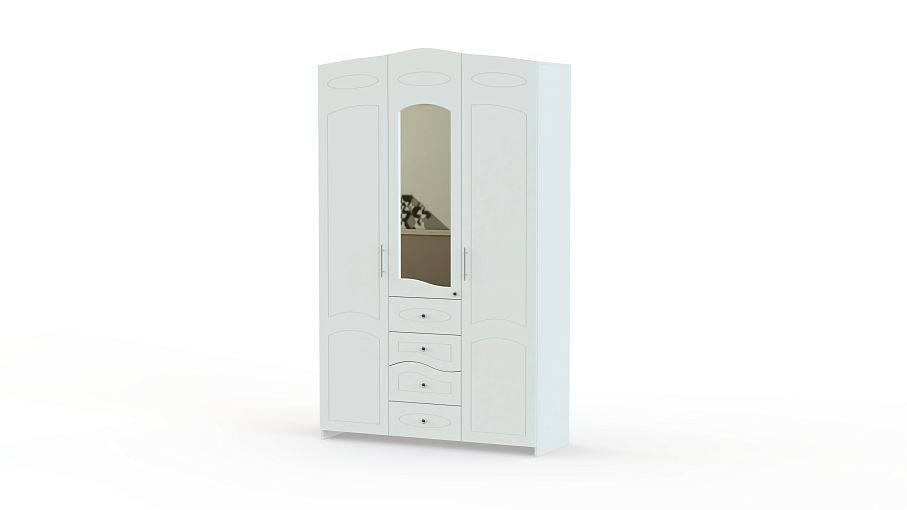 Шкаф Анфей 3Д BMS отличается характерной для классической мебели расцветкой в универсальных белых тонах, яркой декоративностью и надежностью конструкции. Модель с фигурно вырезанными фасадами украшена фрезеровкой и изящной фурнитурой, на центральной дверце – большое зеркало. Два платяных отделения и бельевая секция с полками скомбинированы с четырьмя выдвижными ящиками для мелких вещей и без труда разместят предметы гардероба и постельное белье. Купить шкаф Анфей 3Д BMS вы сможете в нашем интернет-магазине.