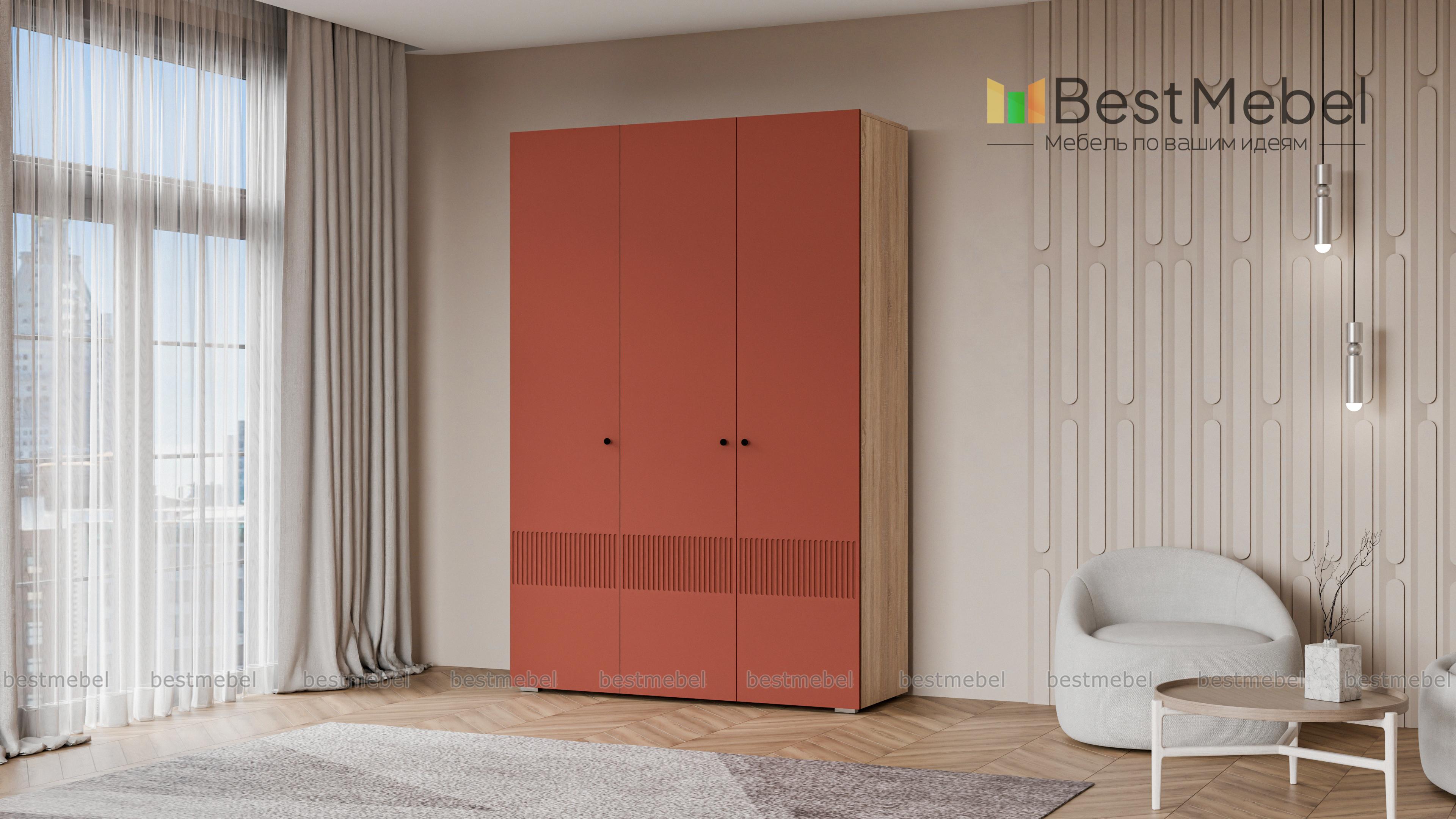 Шкаф распашной Джосс 3 BMS — компактный и стильный в двух актуальных оттенках. В отделке сплошного фасада, выполненного из устойчивой к повреждениям МДФ, использован оригинальный рельеф, дверцы легко открываются с помощью маленьких круглых ручек. Для разных вариантов хранения в трехдверной модели предусмотрены как штанга, так и секция с полками. Купить шкаф распашной Джосс 3 BMS с выбором размеров, цвета и фурнитуры вы сможете в нашем интернет-магазине.