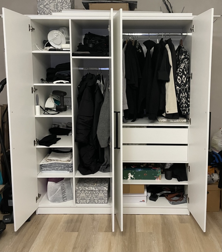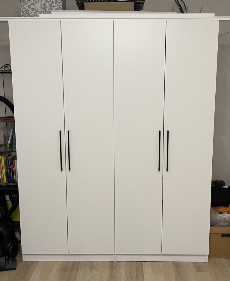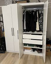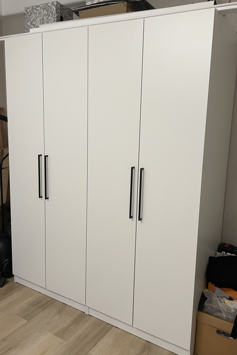Шкаф распашной Остин Лайт 23 BMS (700х2050х440), заказ 00000204767. Делали ремонт в коридоре и необходимо было заменить два шкафа, прихожую и дверцы на антресолях. Всё заказали здесь. Заказывали оба шкафа Остин через сайт (Лайт 3 BMS и этот Лайт 23 BMS). Самостоятельно поменяли размеры, цвет фасадов (Тэффи L) и цвет самого шкафа (серый), кромку лицевых частей на 2 мм, ручки оставили эти (понравились), петли поменяли на Блюмовские с доводчиками. Внутри поменяли штангу на полки (6 шт), сделали перфорацию, чтобы в процессе эксплуатации можно было переставлять полки на нужную высоту. После оформления заказа на сайте, перезвонила менеджер (минут через 20), еще раз всё уточнила и перепроверила, помогла с точными размерами, чтобы шкаф точно встал в нишу. Всё изготовили быстро. Позвонили и согласовали день доставки. Доставка хорошая, оформляли с поднятием в квартиру. Комплектация полная, всё целое. Выдали документы с гарантией и телефоном компании по сборке. Позвонили туда и через час с нами связался сборщик, согласовали уже с ним дату и время. Отличный парень по сборке мебели. Собрал нам сразу два шкафа и прихожую за 4 часа. Спасибо, что появился такой интернет-магазин! Цена шкафа намного ниже, чем заказывать в компаниях по изготовлению мебели на заказ (узнавали в 5 компаниях) и сроки изготовления в несколько раз быстрее. Спасибо, что появился такой интернет-магазин!