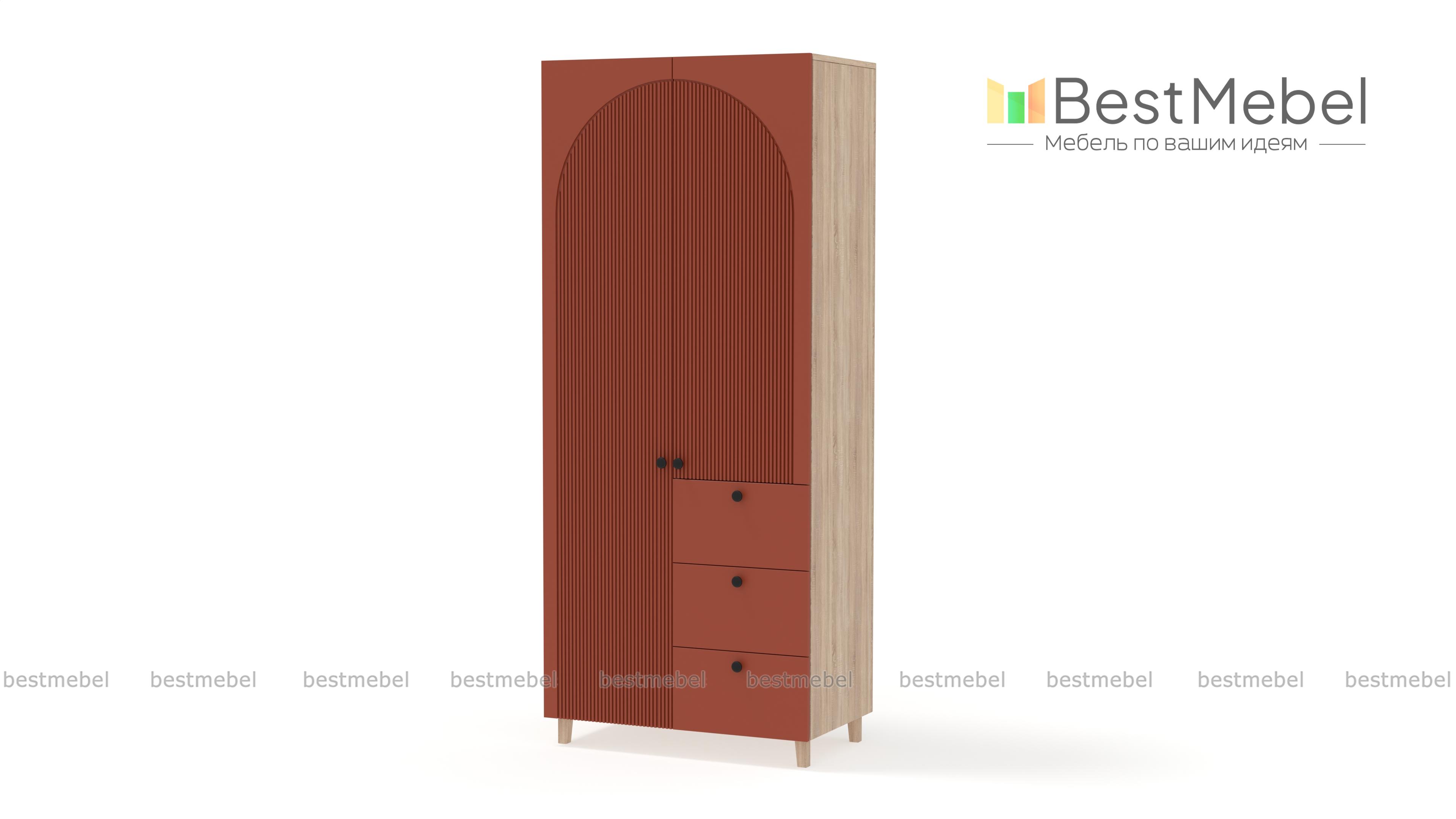 Шкаф распашной Вивьен 1 BMS — компактный, стильный и при этом функциональный. Удобно расположить базовый гардероб помогут распашные секции и ряд выдвижных ящиков, расположенных справа. В отделке шкафа с высокими ножками использованы универсальные оттенки, а роль акцента играют миниатюрные круглые ручки и оригинальный арочный рельеф на фасаде. Купить шкаф распашной Вивьен 1 BMS вы сможете на сайте нашего интернет-магазина в любом удобном размере и оттенках из каталога.