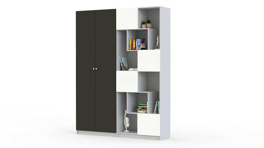 Шкаф-стеллаж Шелби-25 BMS по достоинству оценят те, кто предпочитает современный дизайн и функциональность. Комбинированная модель объединила распашной шкаф с полками и эффектный стеллаж, оборудованный открытыми секциями разных размеров и глухими шкафчиками. Благодаря практичной конструкции вы сможете разместить как домашний текстиль и одежду, так и книги, учебные материалы и декоративные предметы. Корпус серого оттенка дополняют контрастные матовые фасады. Купить шкаф-стеллаж Шелби-25 BMS приглашаем в наш интернет-магазин.