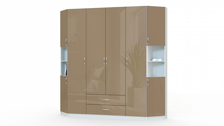 Шкаф Венера 17 BMS – универсальное решение для элегантной современной спальни или гостиной. Продуманная система хранения включает в себя платяное двухдверное отделение, распашные бельевые секции, выдвижные ящики для мелочей и скошенные торцевые колонки с глухими и открытыми полками для книг и интерьерных украшений. Эффектный вид лаконичной по форме модели придает исполнение в светлом глянце. Купить шкаф Венера 17 BMS и оптимизировать хранение вам поможет наш интернет-магазин.