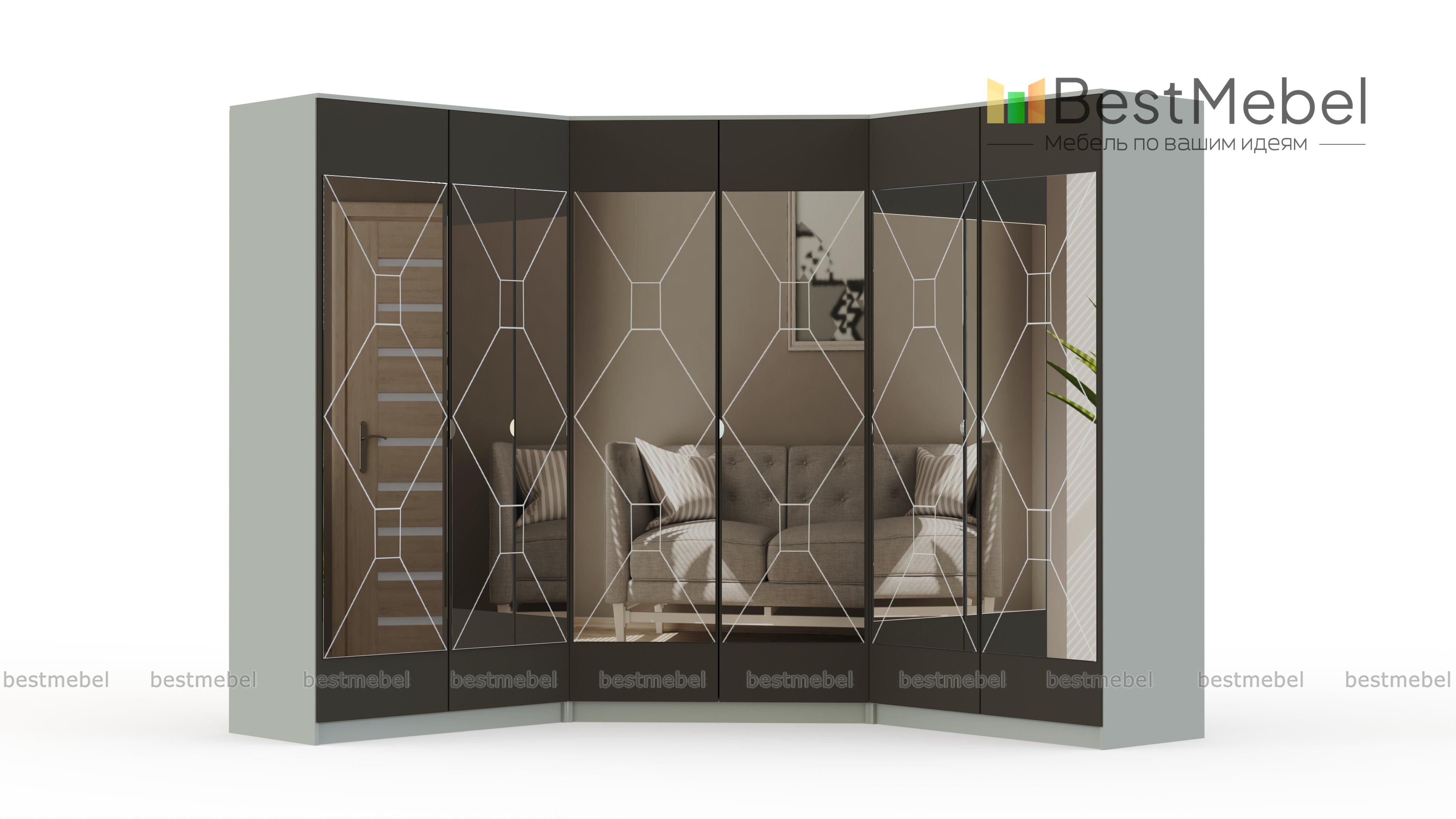 Набор шкафов Глянец 20-3D BMS - эффектное решение для просторных спален и гардеробных в стиле минимализм и хай-тек. Крупногабаритная угловая композиция включает в себя три распашных двухдверных шкафа для белья и одежды и бережно разместит гардероб и постельные принадлежности. Отличительная особенность модели – зеркальные фасады, незаменимые для примерок, и позволяющие визуально расширить пространство. Купить набор шкафов Глянец 20-3D BMS для комфортного современного интерьера приглашаем в наш интернет-магазин.