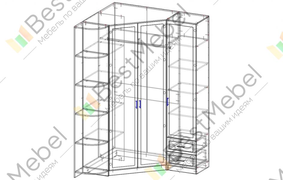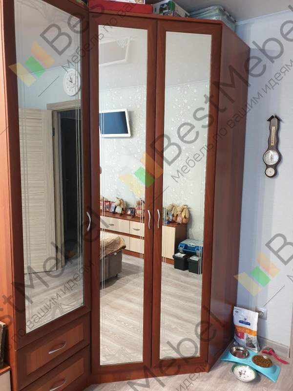 Шкаф большой, вместительный. Цвет и размер подобрали индивидуально, также как и зеркальное расположение отделений шкафа. Изготовили, доставили и собрали быстро и качественно.