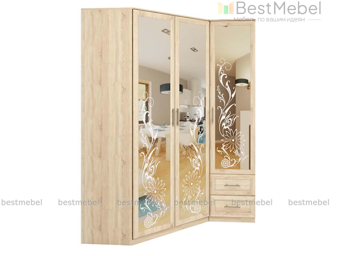 Шкаф угловой Наполеон 14.4 BMS – это вместительность, надежность традиционной распашной конструкции и изящный декор. Крупногабаритная конструкция объединила платяной шкаф и пенал с выдвижными ящиками для мелких вещей в основании. Выполненный в светлых древесных тонах, шкаф с полностью зеркальными фасадами декорирован фантазийным цветочным рисунком. Благодаря угловой форме вы сможете гармонично вписать модель в интерьер даже небольших помещений и сэкономить пространство. Купить шкаф угловой Наполеон 14.4 BMS приглашаем в наш интернет-магазин.