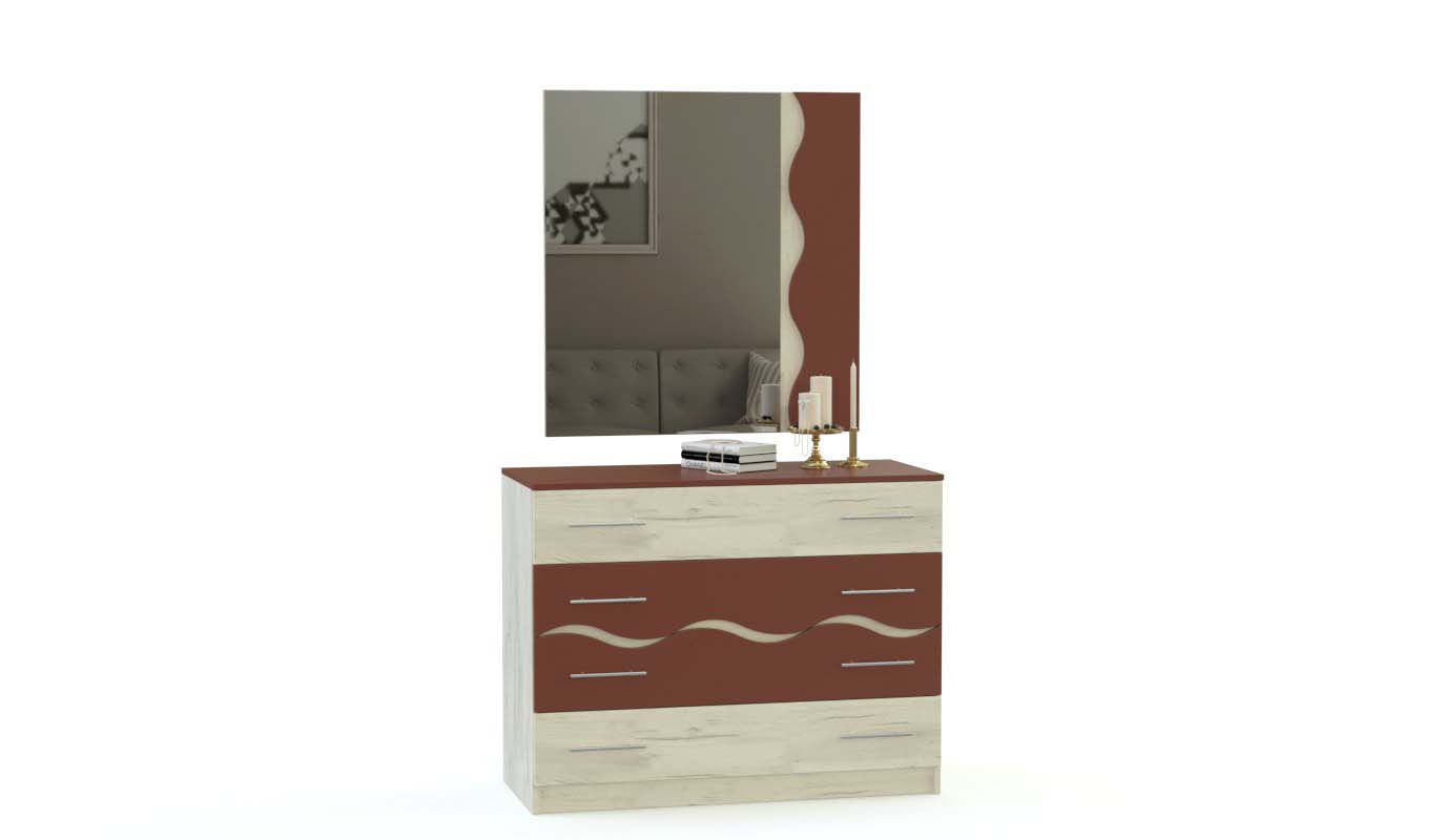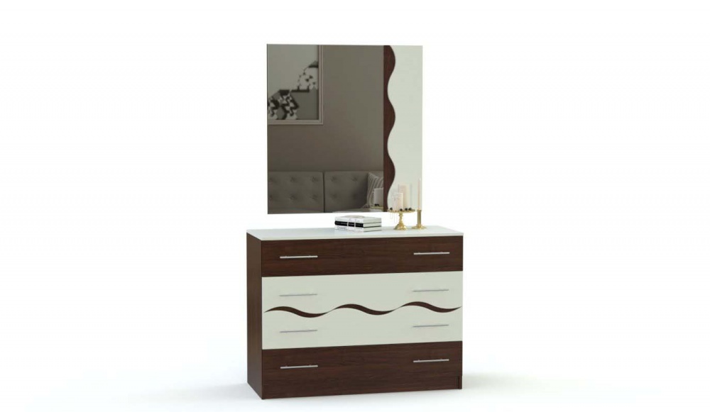 Спальня модульная Валенсия BMS понравится тем, кто ценит элегантную простоту современных дизайнов. Эффектная модель выполнена в контрастном сочетании оттенков и декорирована волнообразными вырезами, которые придают композиции визуальную легкость. Полноценный отдых вам подарит двуспальная кровать, а для хранения мелочей, постельного белья и одежды в комплект входят прикроватные тумбы, комод и четырехдверный шкаф с зеркалами. Незаменимым станет в интерьере спальни и навесное зеркало. Купить спальню модульную Валенсия BMS вы сможете в нашем интернет-магазине по приятной цене.