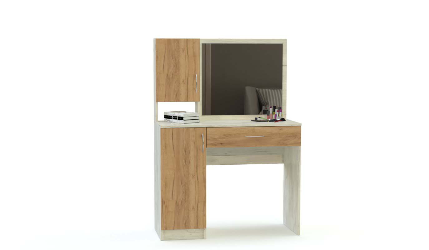 Простой интеллигентный спальный гарнитур Ронда BMS не загромоздит пространства, может устанавливаться в комнате любой площади. Несмотря на небольшое количество предметов, входящих в него, вы ощутите уют и комфорт от пребывания в интерьере, созданном с использованием стильной мебели. В оформлении удачно перекликаются контрастные оттенки дуба Белфорд и венге, что придает спальне изысканный вид. В составе кровать с удобным изголовьем, трехстворчатый комбинированный шкаф, оборудованный внизу выдвижными комодными ящиками, прекрасный макияжный стол, который станет гордостью хозяйки. У него имеются тумба, широкий выкатывающийся ящик, навесной шкафчик и шикарное зеркало. Купить гарнитур Ронда BMS недорого можно в нашем магазине онлайн прямо сейчас.