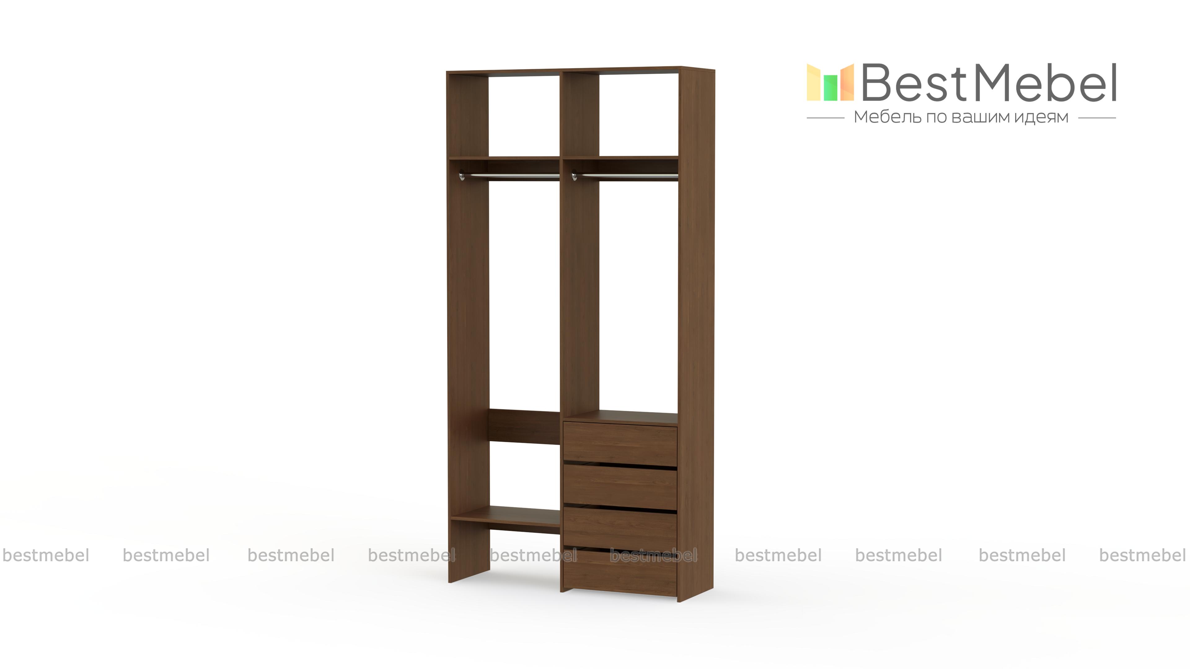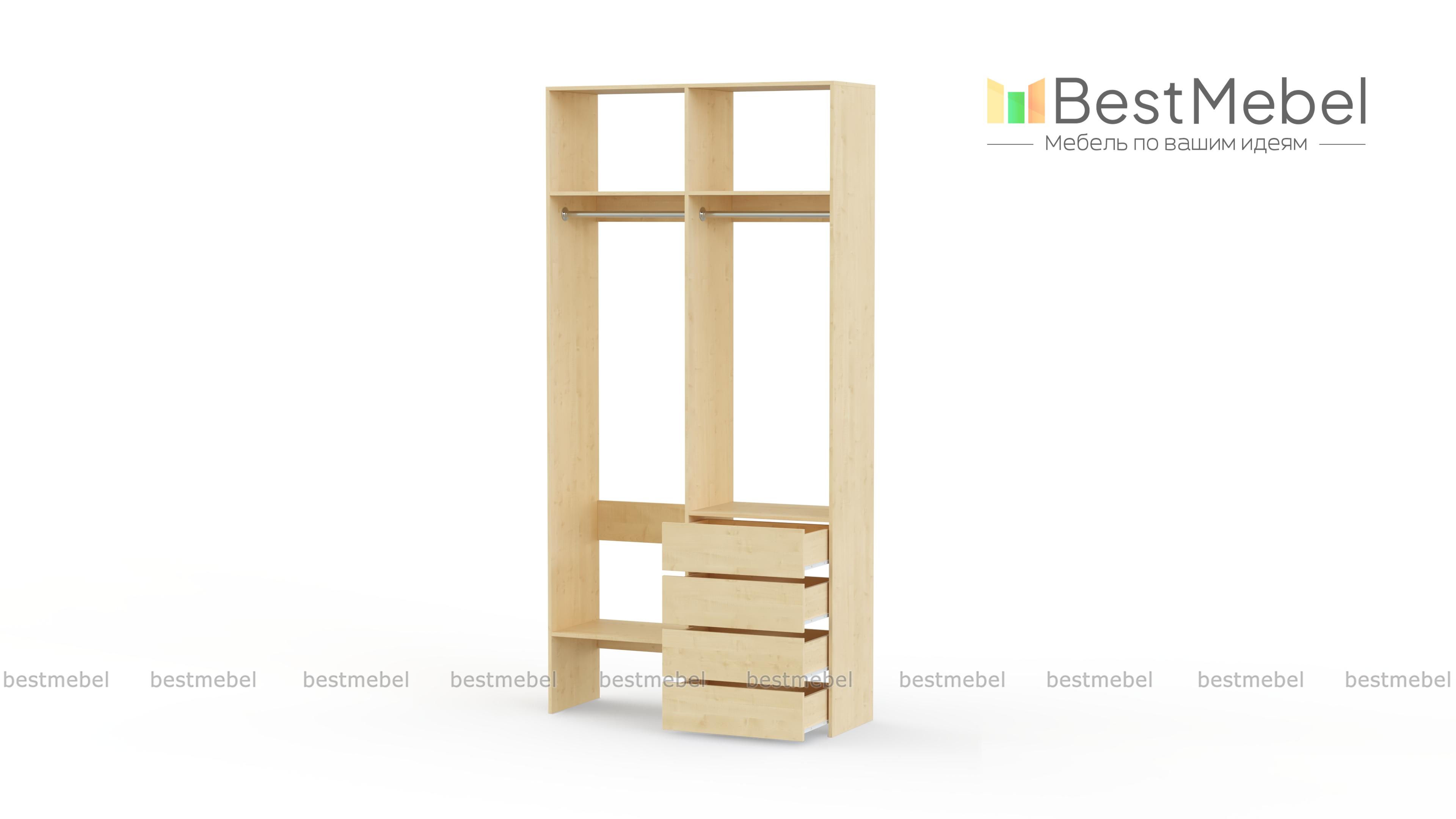 Стеллаж для одежды Мирта 45 BMS позволяет выделить зоны для хранения разных вещей. Комплектация включает в себя отделения со штангами для короткой и длинной одежды, полки сверху и снизу, а также ряд из четырех выдвижных ящиков справа. Двухсекционный стеллаж выполнен в светлом базовом оттенке и отлично смотрится на небольшом метраже. Купить стеллаж для одежды Мирта 45 BMS вы всегда сможете в нашем интернет-магазине, подобрав нужные размеры и оттенок по каталогу.