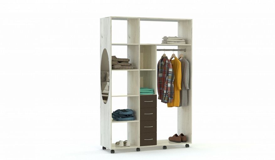 Стеллаж Майя 8 BMS отличается особенной вместительностью за счет комбинированной конструкции. Продуманная система хранения включает в себя отделение со штангой, полностью открытые и оборудованные задними стенками полки, а также четыре выдвижных ящика для мелочей. Дополненный колесиками для легкости перемещения и большим овальным зеркалом, стеллаж сочетает в оформлении светлые крафтовые оттенки и шоколадный. Купить стеллаж Майя 8 BMS и легко поддерживать дома порядок вам поможет наш интернет-магазин.