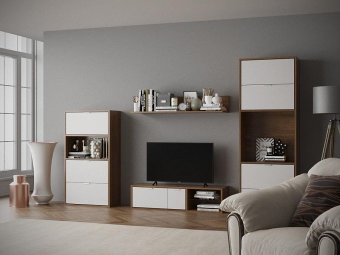 Гостиная Белый Дом BMS уютно впишется в интерьер модной отделки. Представленная гостиная состоит из отдельных модулей: трёх тумбочек и навесной полки. Наполнение отделов состоит из выдвижных ящиков и изящных полочек. Хранить в таком комплекте можно всё, что вздумается хозяевам: одежду, необходимые мелочи, а также, установить современную аппаратуру. Модули, возможно, расставить по желанию пользователя, но наши дизайнеры советуют в центральной части поставить низкую тумбу и повесить полку. Цветовая гамма веет природной красотой и нежностью. Купить гостиную Белый Дом BMS по низкой цене можно в нашем магазине.